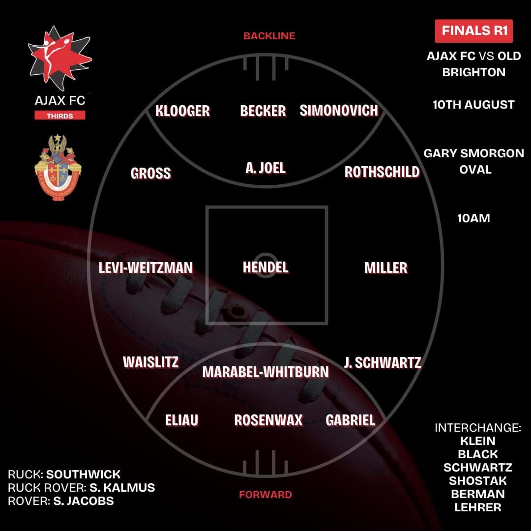 To our tireless leader Alida, for the many hours of work she has put in to making sure that we have a thirds team that is well supported and resources. That goes for Peter Kagan, Andrew Shenker and Nathan Caplan who do much work behind the scenes to make sure we have grounds, umpires and resources each week, and to Johnny Klein for being the team manager, even when Chooka was away overseas