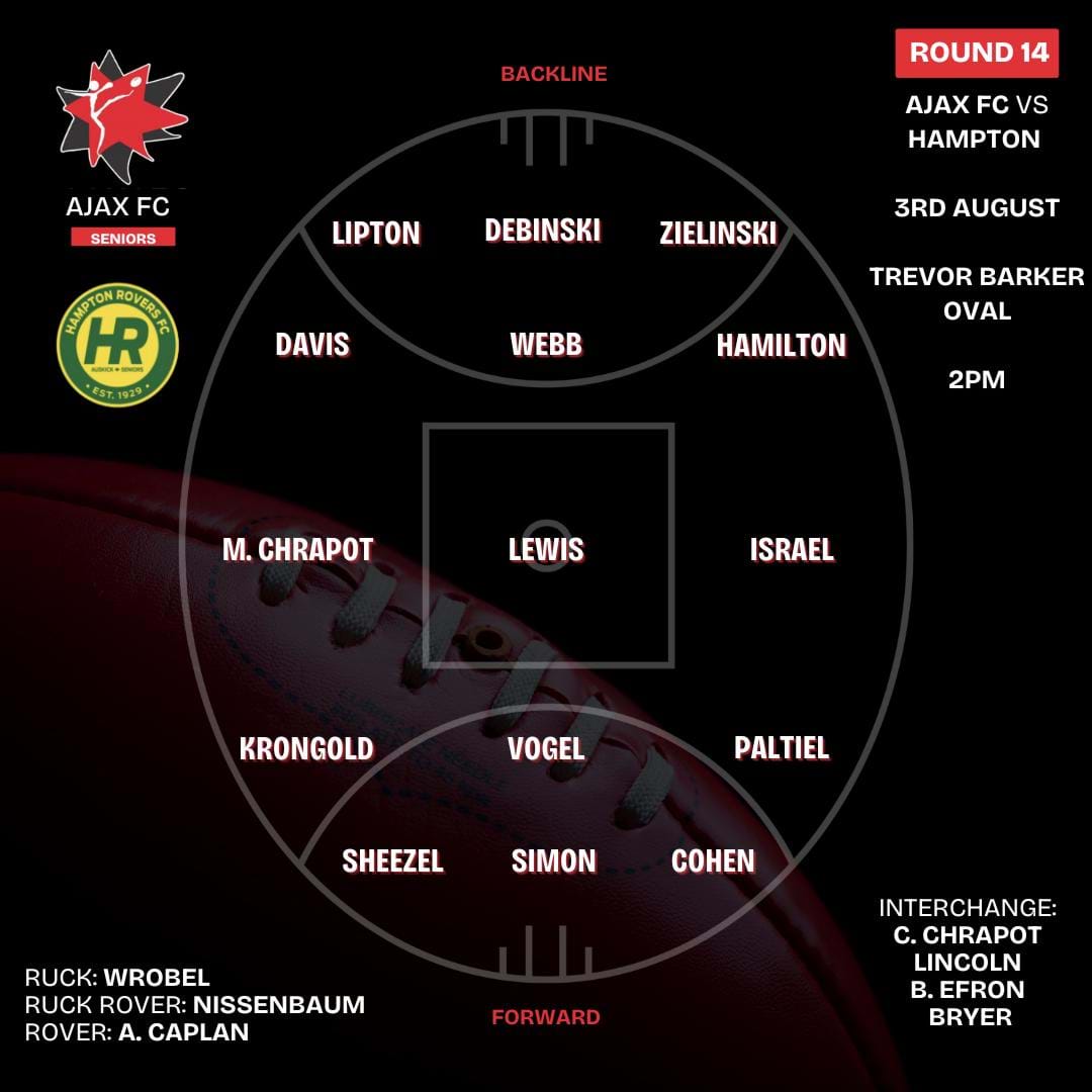 Goals: J Cohen 3, Sheezel 2, A Caplan 1, M Chrapot 1, Israel 2,