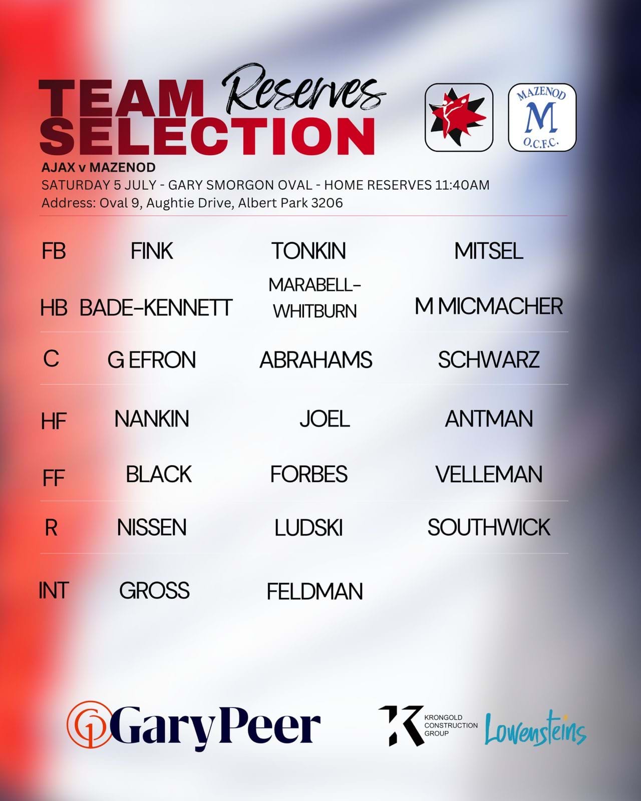 AJAX v Mazenod - Home