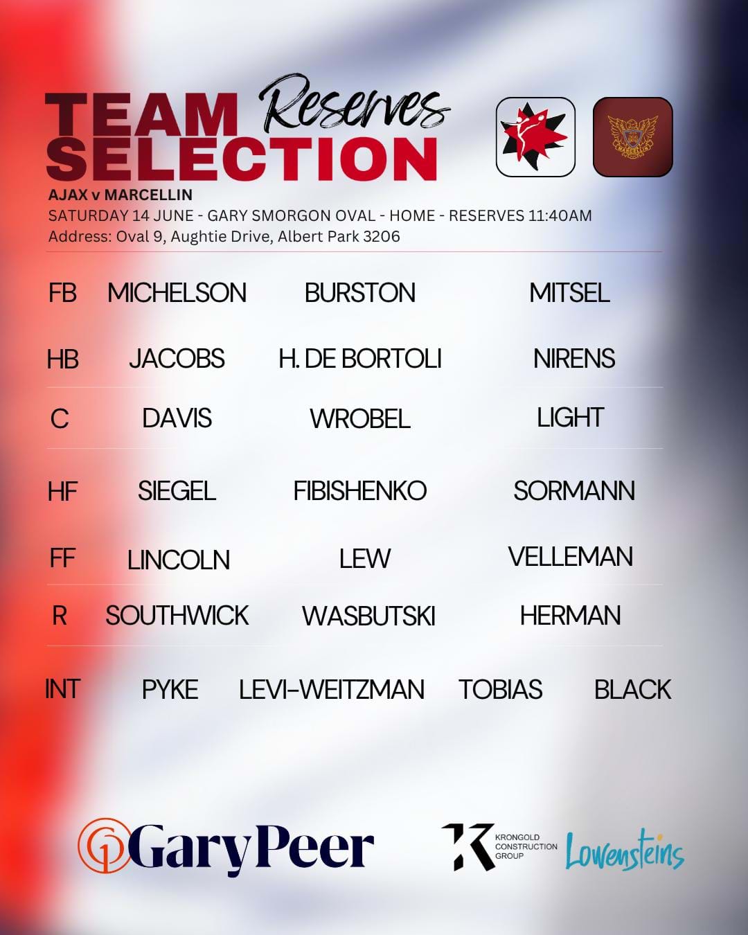 Goals: J Fibishenko 2, C Wasbutzki 2, O Sormann 1, J Lew 1, L Siegel 1, Je Wrobel 1