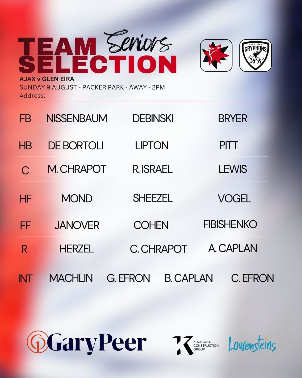 AJAX v Glen Eira/McKinnon - Away
