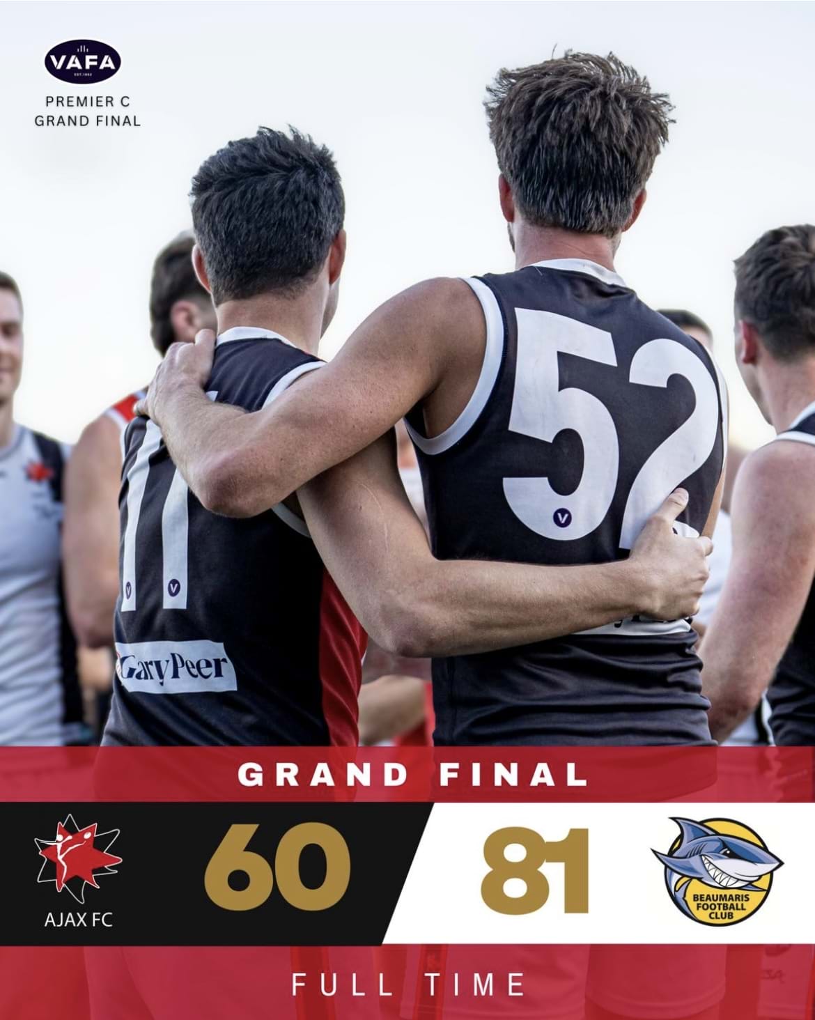 In the end Beaumaris held on but AJAX walked off with pride. The performance was filled with spirit, resilience and togetherness. The future of this group is bright and on grand final day they left nothing in the tank. Their win over Parkdale in the preliminary final also secured promotion to B-grade for the 2026 season, a fitting reward for a team on the rise.