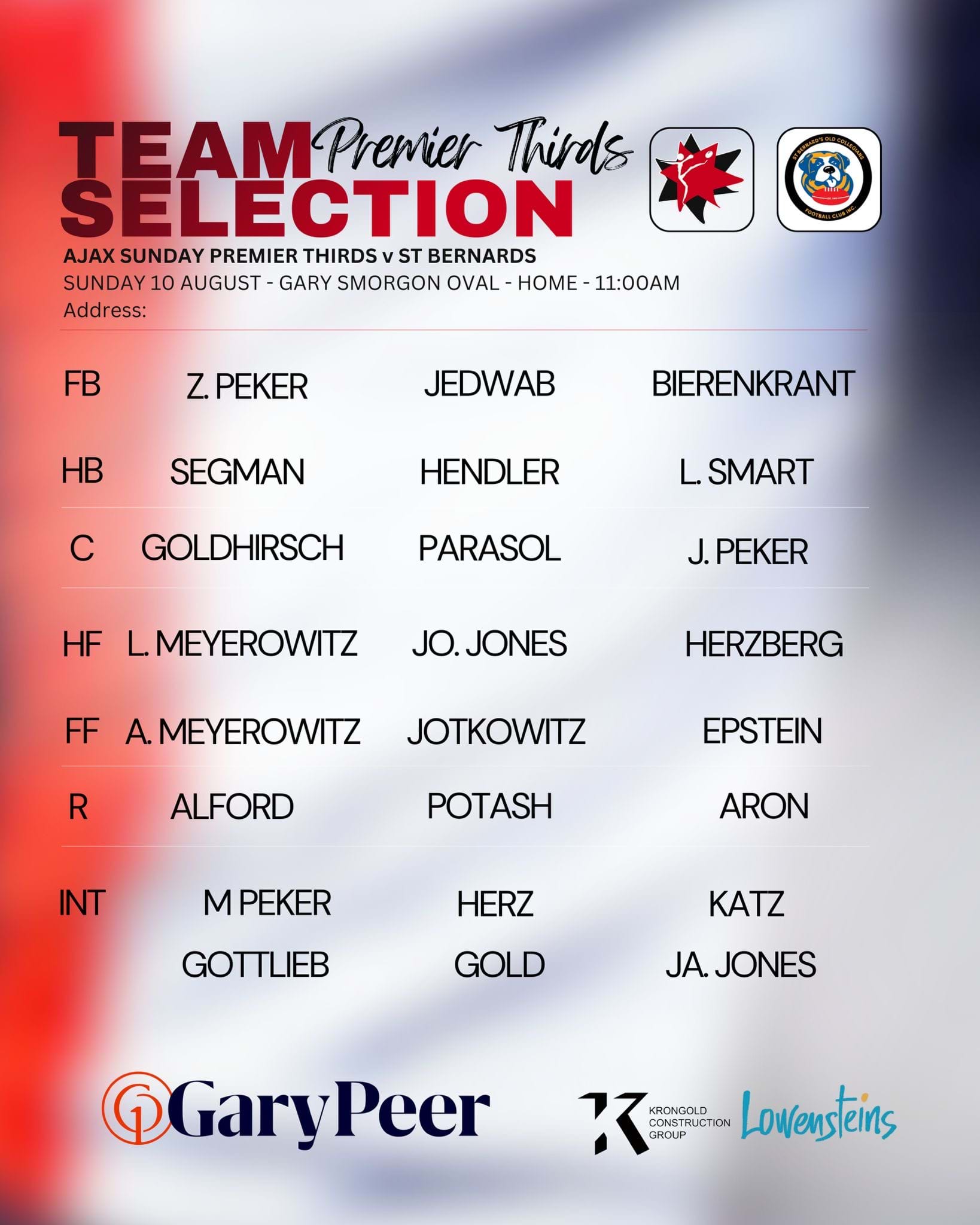 The second quarter had the Jackas run out strong, with a slew of goals putting some momentum on the field, Kai Gold kicked a goal in his return, and captain Zev Aron slotted a stunner, shrugging a tackle and putting the ball on the outside of the boot for 6 points. However a late quarter lapse let St Bernards hit hard and fast, piling on 3 quick goals, bringing the contest to a one goal margin in the favour of AJAX.