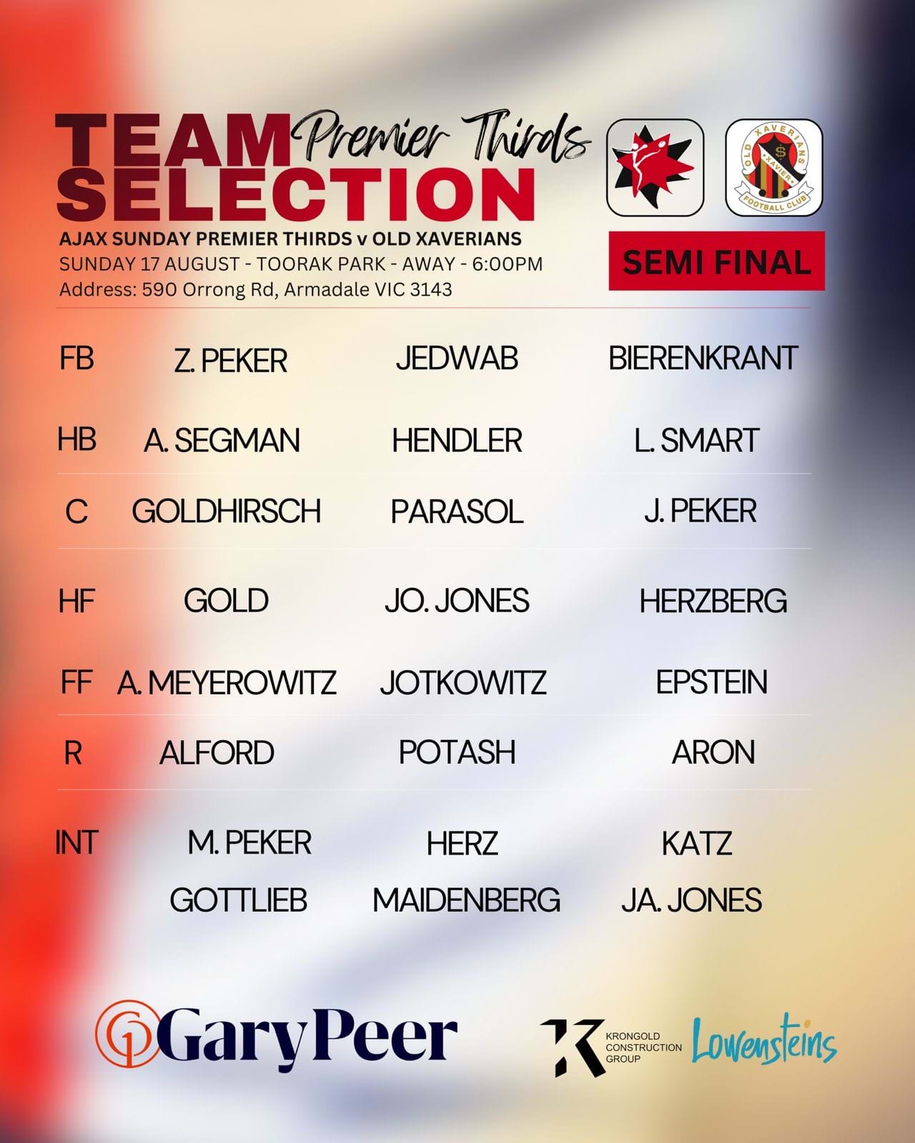 Goals: A Meyerowitz 5, J Parasol 2, G Jotkowitz 2, Z Aron 1,